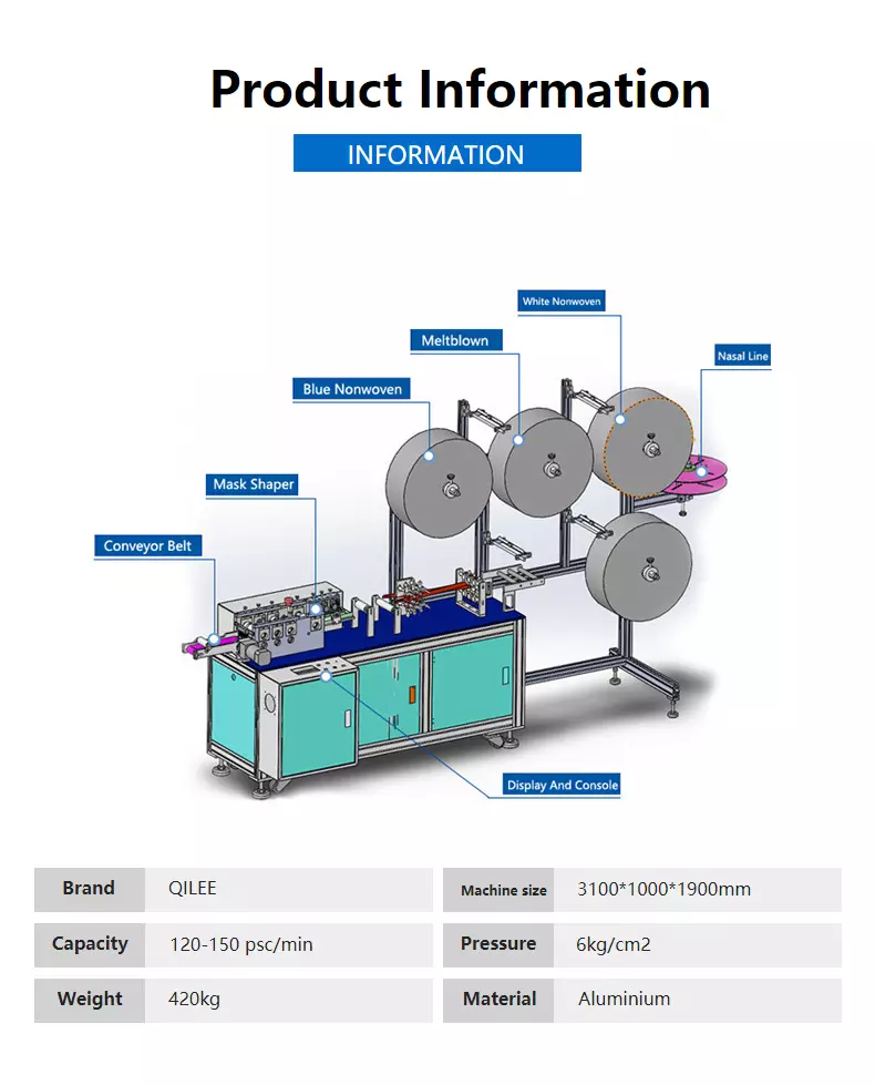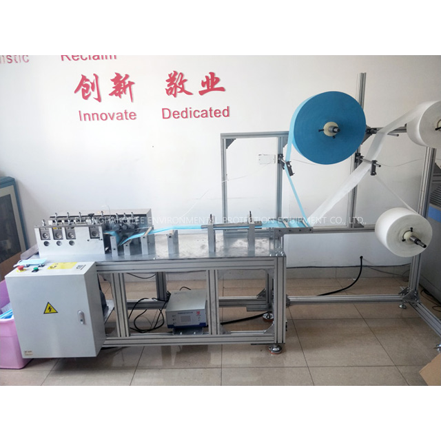 利用超聲波熔合和自動邊緣密封的原理,完成了面罩邊緣的焊接和沖壓過程。該機(jī)器操作簡單方便,可單人使用,只需要工人放料即可,大大節(jié)省了勞動。采用自動生產(chǎn),可以使用1-3層PP紡粘無紡布和活性炭及過濾材料,從原料進(jìn)料到鼻梁插入,封邊,裁切成品的全機(jī)按一條線自動操作,使用不同的原料,可以達(dá)到不同的標(biāo)準(zhǔn)。該設(shè)備性能穩(wěn)定,產(chǎn)量高,缺陷率低,操作簡便。面膜身機(jī)配有耳帶點焊機(jī)。