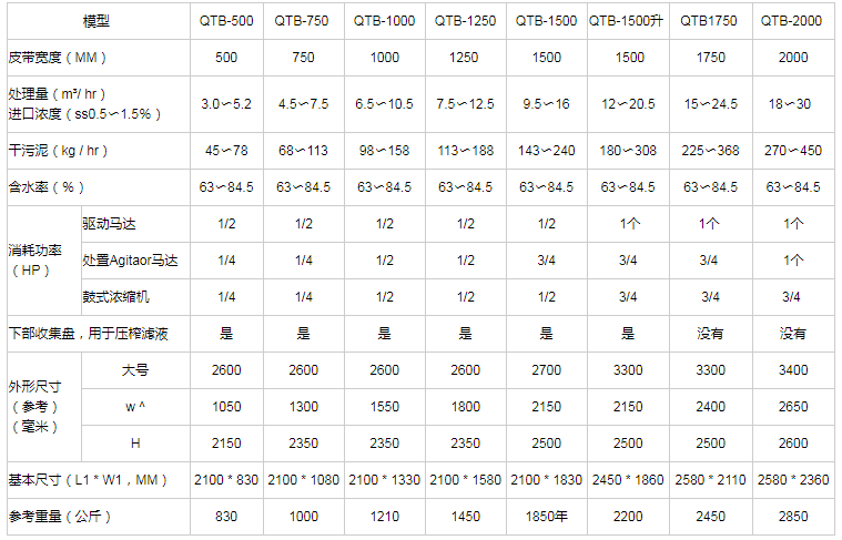 帶式壓濾機(jī)價(jià)格選擇型號(hào):